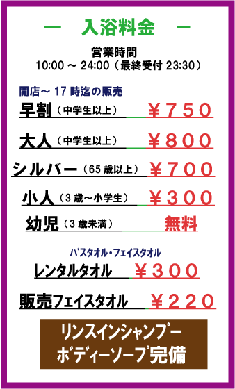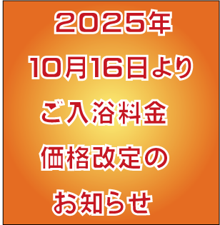 2025年10月16日(木)より、各種「ご入浴料金」を改定させて頂きます。